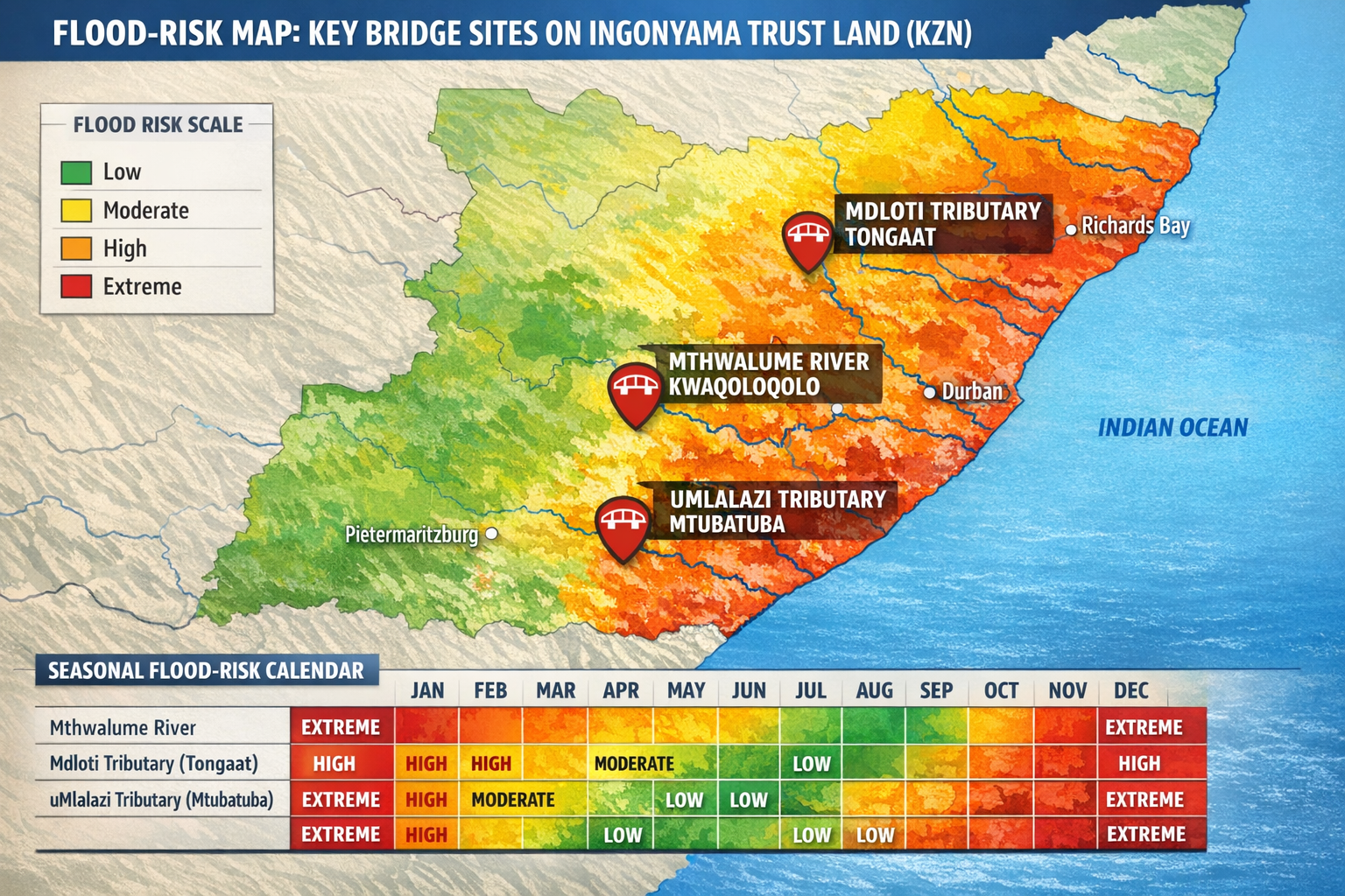 Across rural South Africa, thousands of families are cut off from schools, clinics, jobs, and markets simply because they cannot cross a river safely. A single flooded crossing can isolate an entire community — children miss school, patients cannot reach healthcare, and local economies grind to a halt. In the event of flash floods, these rivers present a immediate and severe threat to the safety of the people trying to cross these rivers in order to get to school, work or church.